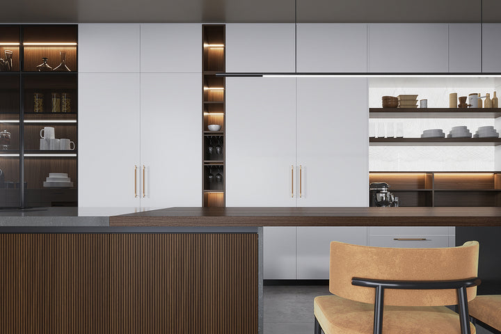 Bine ați venit la Cucina Paradiso, o bucătărie rafinată și contemporană, concepută pentru a oferi un echilibru perfect între estetică modernă și funcționalitate de top. Acest spațiu culinar este creat pentru cei care apreciază detaliile fine și designul elegant, oferind un mediu inspirator pentru toate aventurile gastronomice.