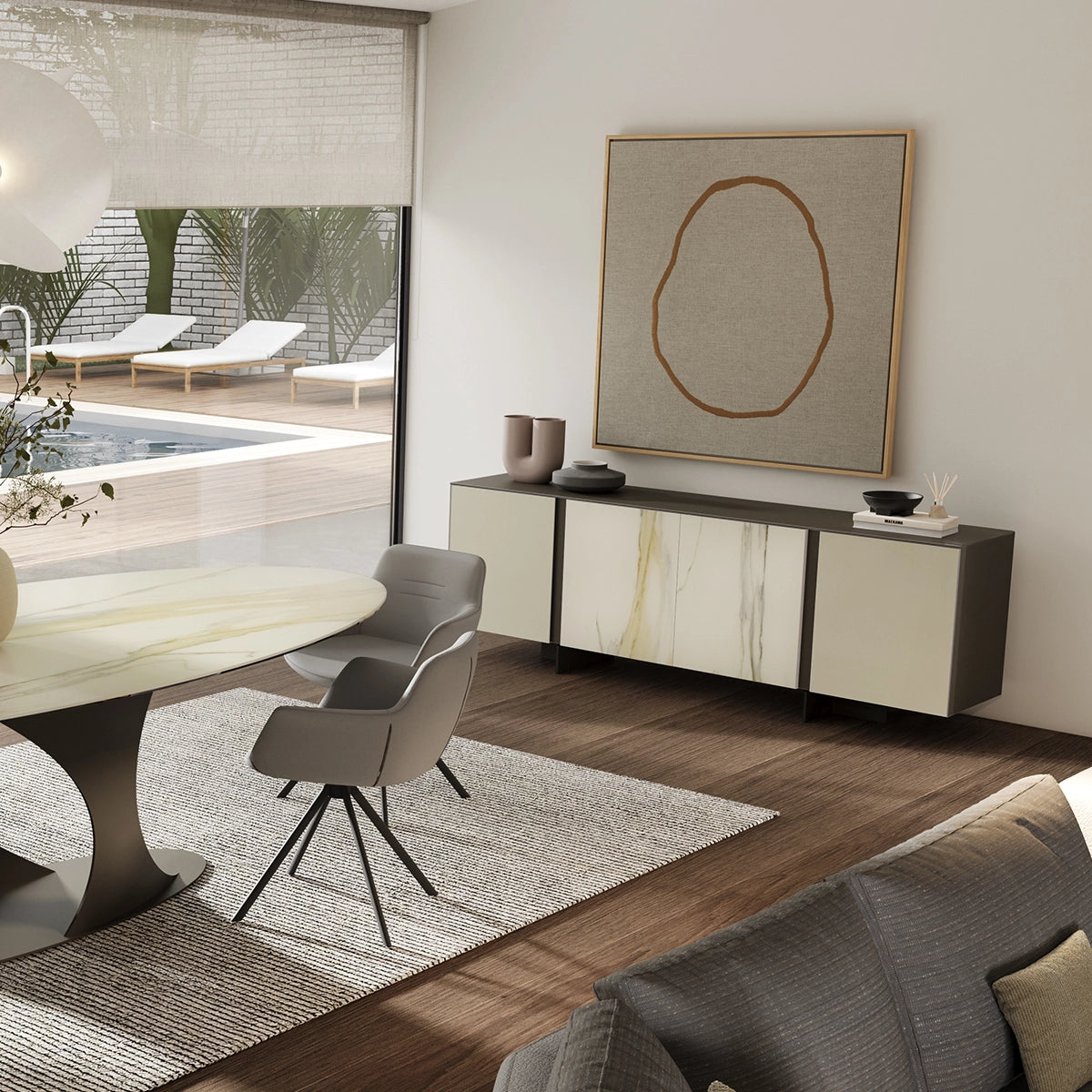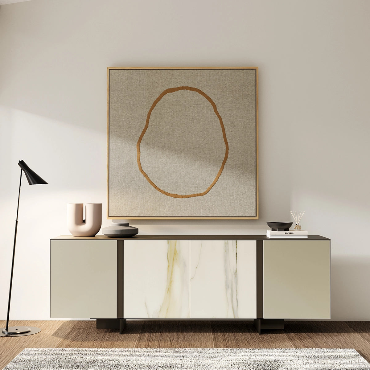 Comoda Linus – Ceramic si Sticla Mata cu Picioare Metalice