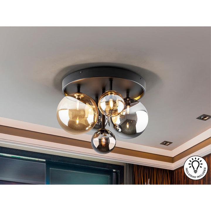 CLOSED COURTYARD CEILING LAMP 5L., BLACK-BRASS