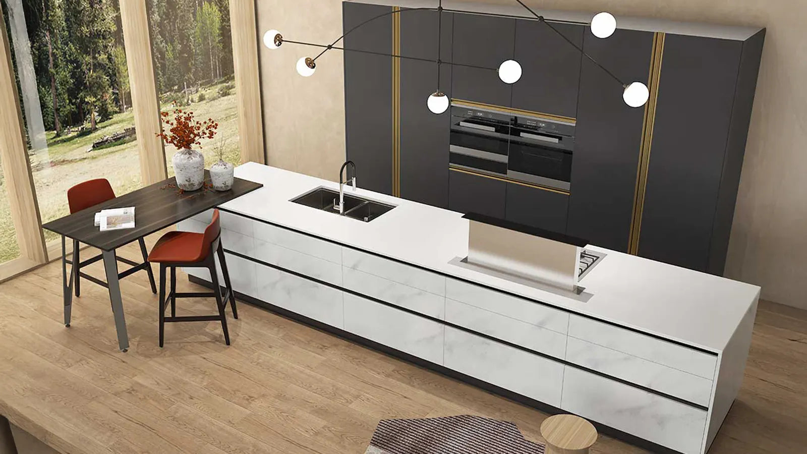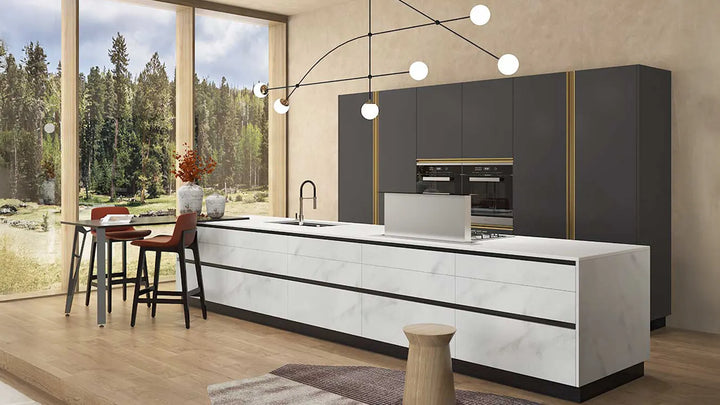 Bucătăria modernă de la Divani & Sofa este alegerea perfectă pentru cei care își doresc un spațiu elegant și practic, care să îmbine estetica contemporană cu funcționalitatea optimă. În plus, electrocasnicele încorporabile completează perfect această bucătărie, adăugând un plus de rafinament și utilitate.