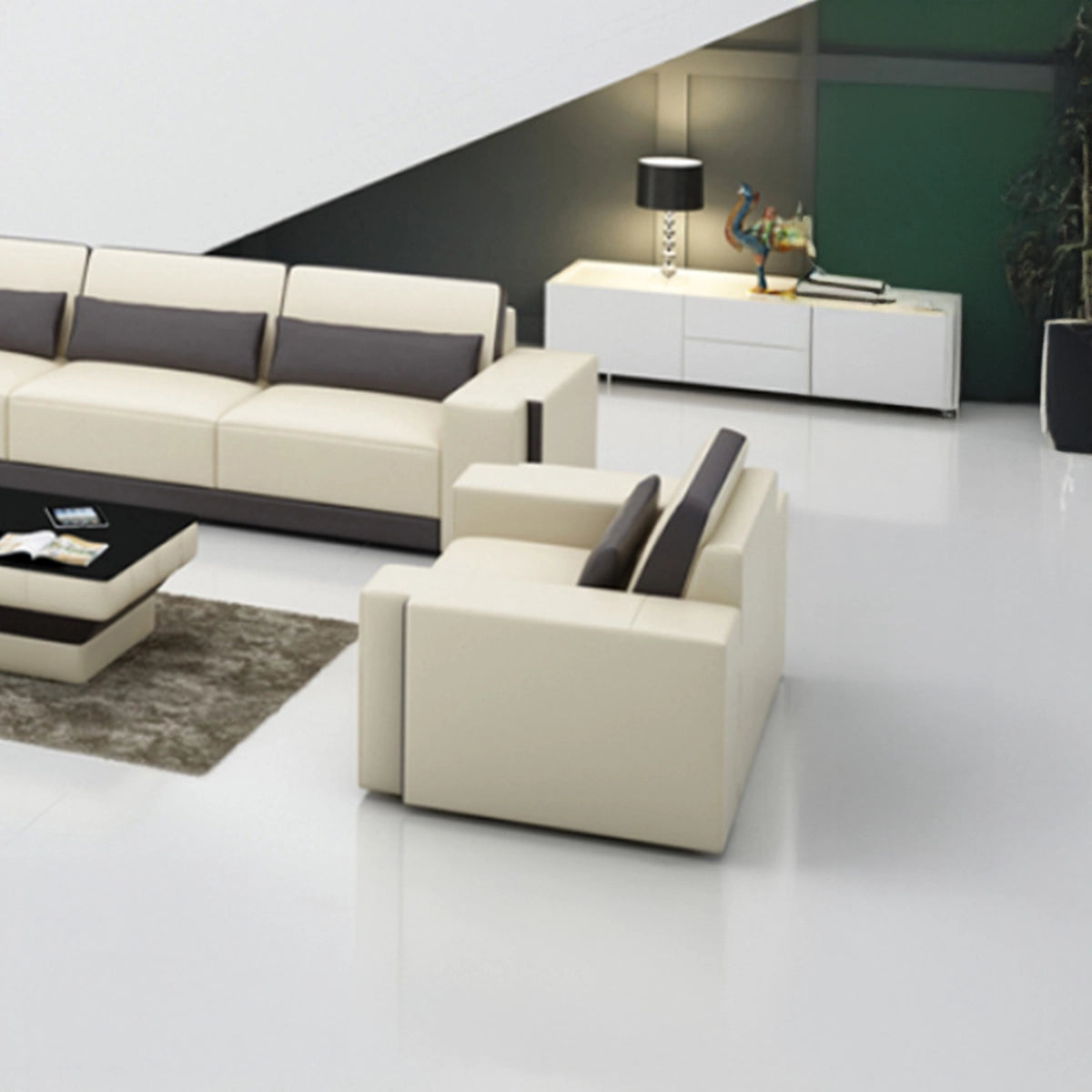 La composizione Leuca è un meraviglioso elemento d'arredo che si integra facilmente in qualsiasi casa. Con le sue forme semplici, lineari e moderne, Leuca aggiunge stile e funzionalità al tuo soggiorno. Questa speciale composizione, che puoi configurare a tuo piacimento, è la scelta ideale per te. * Il prezzo indicato si riferisce alla pelle naturale su tutte le aree di contatto (seduta, schienale, braccioli e poggiatesta), mentre il retro e i bordi sono in ecopelle. Le dimensioni della composizione sono: