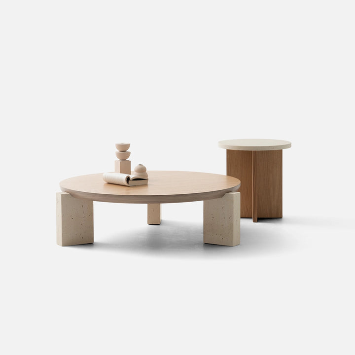 Masuta Cafea si Laterala Nota – Stejar Natural si Travertin