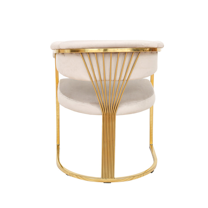 La struttura della sedia VERTEX è realizzata in acciaio inossidabile, scelto per la sua straordinaria durevolezza e resistenza. La finitura oro lucido aggiunge un tocco di opulenza e un effetto visivo accattivante, riflettendo la luce e creando un lussuoso punto focale in qualsiasi ambiente. Questa robusta base in metallo è completata da un pannello in legno di alta qualità, che aggiunge stabilità e crea un piacevole contrasto con la lucentezza del metallo.