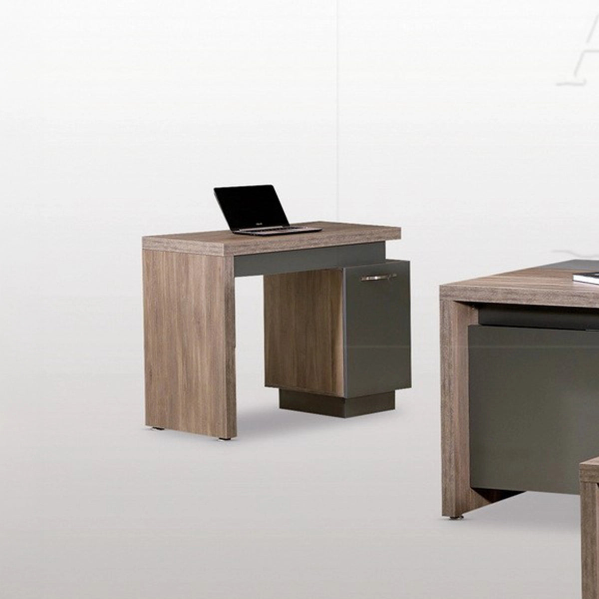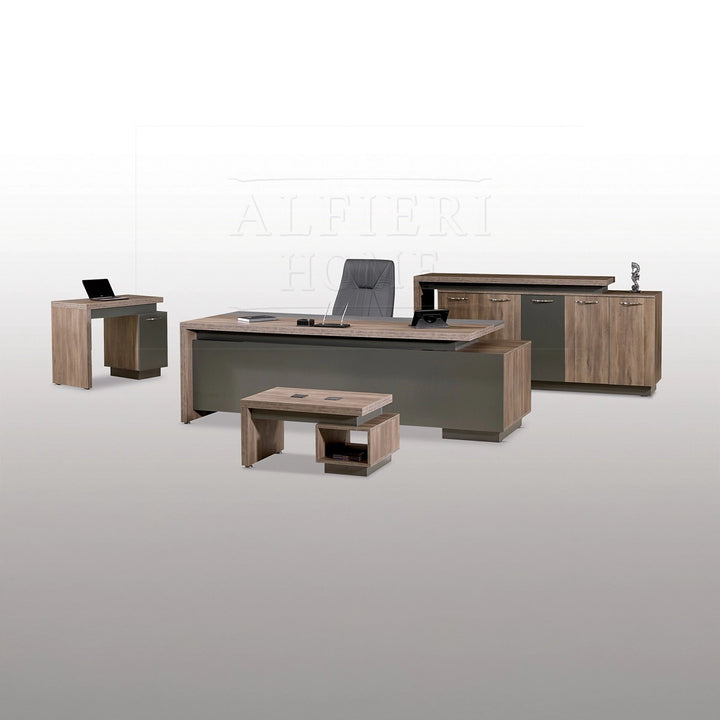 Il tavolino e il tavolo angolare, entrambi spessi 48 mm, si integrano perfettamente in questo set, coniugando stile e funzionalità. La cassettiera, anch'essa spessa 48 mm, offre ampia capacità di contenimento per mantenere la scrivania ordinata ed efficiente. L'intero set riflette uno stile di vita lussuoso e un ambiente di lavoro votato alle prestazioni.