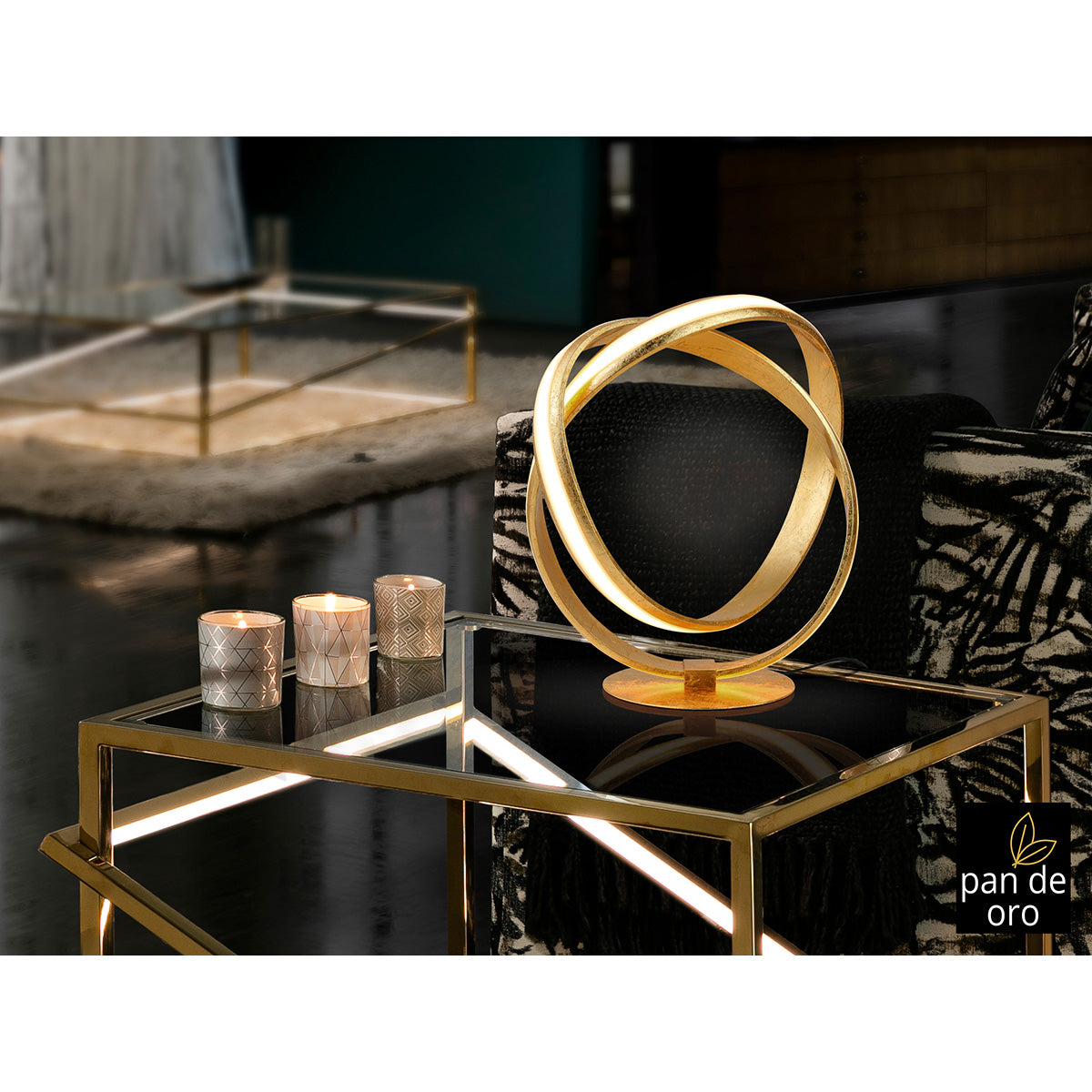 LAMPĂ DE MASĂ LAZAS, FRUNZE DE AUR 30 cm