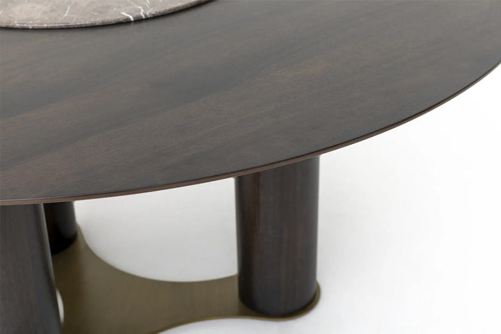 Masa AZZURRO: dansul rotund al artei.Seria Minera împinge granițele designului, oferind o estetică elegantă și fluidă. Detaliul din marmură și modelele naturale, plasate central, se expun în inima spațiilor de locuit.