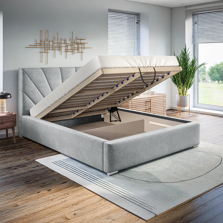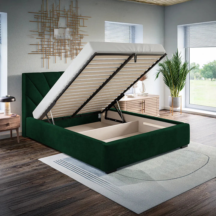 Patul are boxă de depozitare