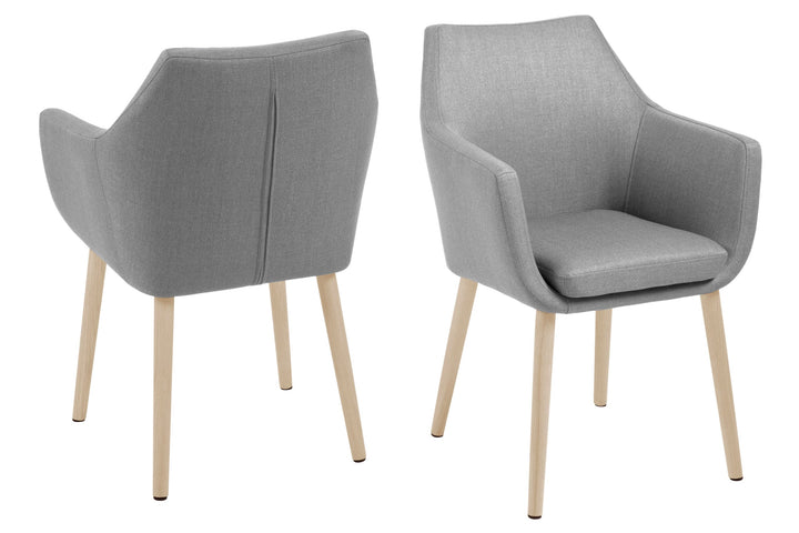 Descoperă farmecul luminos și autenticitatea rustică cu Scaunul de dining NORA cu cotieră. Acest model îmbină nuanța calmă a țesăturii Corsica cu baza spectaculoasă din stejar alb uleiat, oferind un confort ergonomic superior și un design plin de căldură naturală și lumină pentru diningul tău.